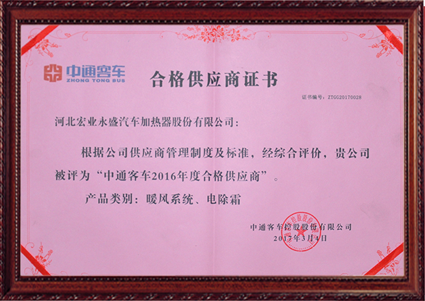 河北宏業(yè)永盛汽車加熱器股份有限公司,占地32萬平方米。目前,公司已擁有加熱器30多項(xiàng)發(fā)明專利和實(shí)用新型專利,形成了5大系列數(shù)十種型號(hào)、規(guī)格。產(chǎn)品包括:獨(dú)立式水冷、風(fēng)冷、燃?xì)饧訜崞?、電加熱器、尾氣加熱器、除霜器、散熱器、各種風(fēng)機(jī)及控制系統(tǒng),成為宇通客車、金龍客車、中通客車、北汽福田、比亞迪等汽車的主流供應(yīng)商。公司通過了ISO9001:2015質(zhì)量體系認(rèn)證、 IATF16949質(zhì)量管理體系認(rèn)證、國軍標(biāo)GJB9001B-2009認(rèn)證、挪威船級(jí)社CE認(rèn)證、出口產(chǎn)品Emark認(rèn)證等。